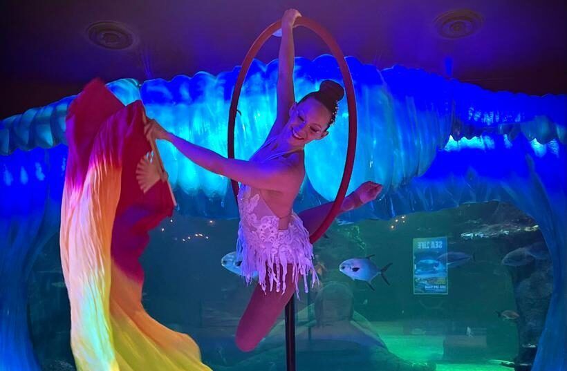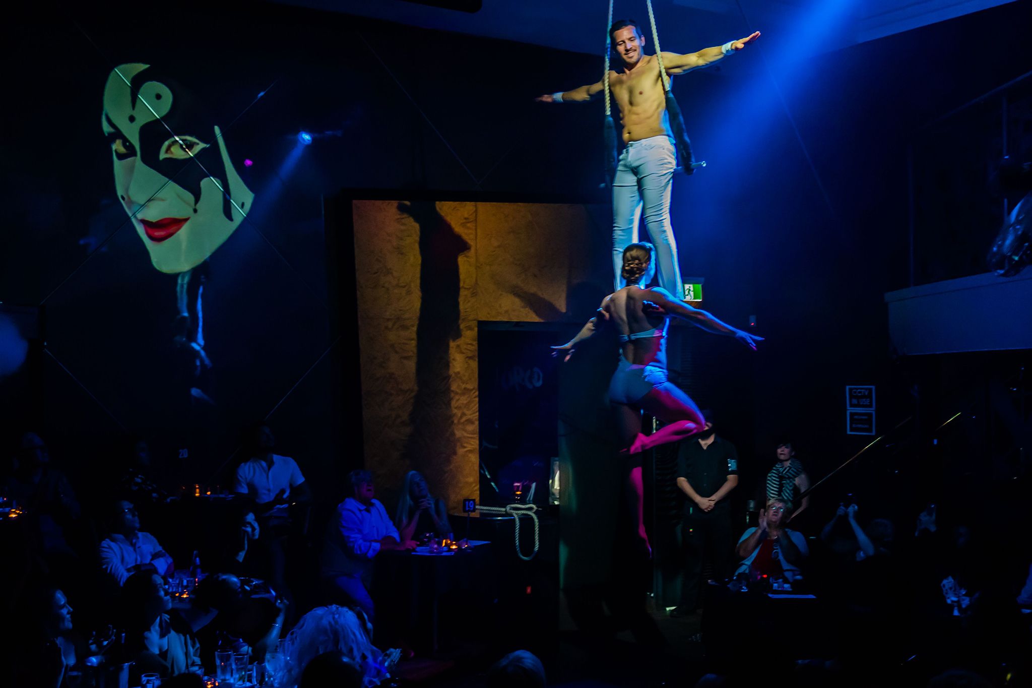 Ambient Acts are a perfect way to add some visual or interactive excitement to your event. Roving Acrobats can mingle, in character, while performing incredible feats of strength and balance. Pretty aerialists can hang from the ceiling and pose for photos with guests. We also own a unique 'Champagne Chandelier' - guests are served their glass of bubbles from an acrobat hanging above them on a beautiful crystal chandelier - a guaranteed talking point and perfect photo opportunity!